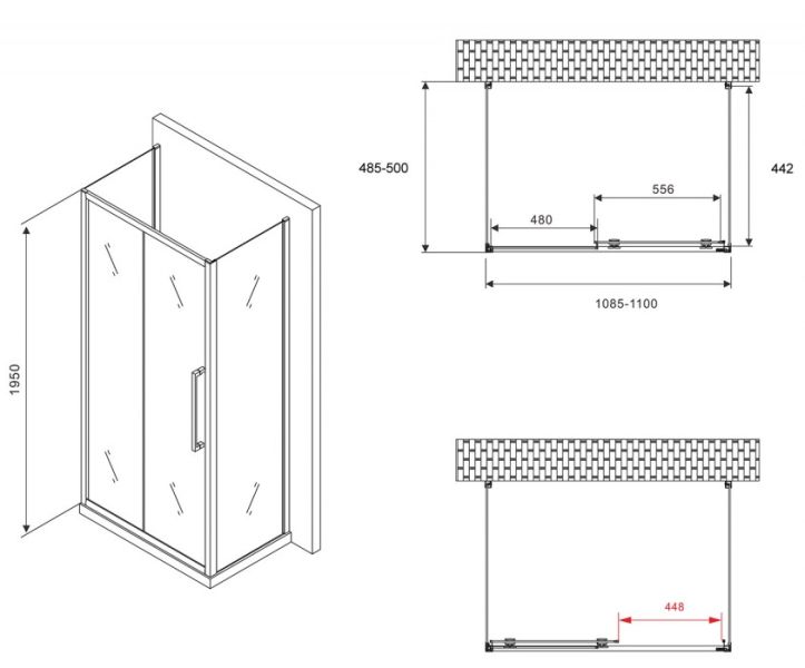 Душевой уголок ABBER Schwarzer Diamant AG30110MH-S50M-S50M 110x50см хром