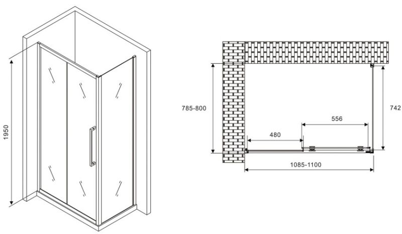 Душевой уголок ABBER Schwarzer Diamant AG30110MH-S80M 110x80см хром