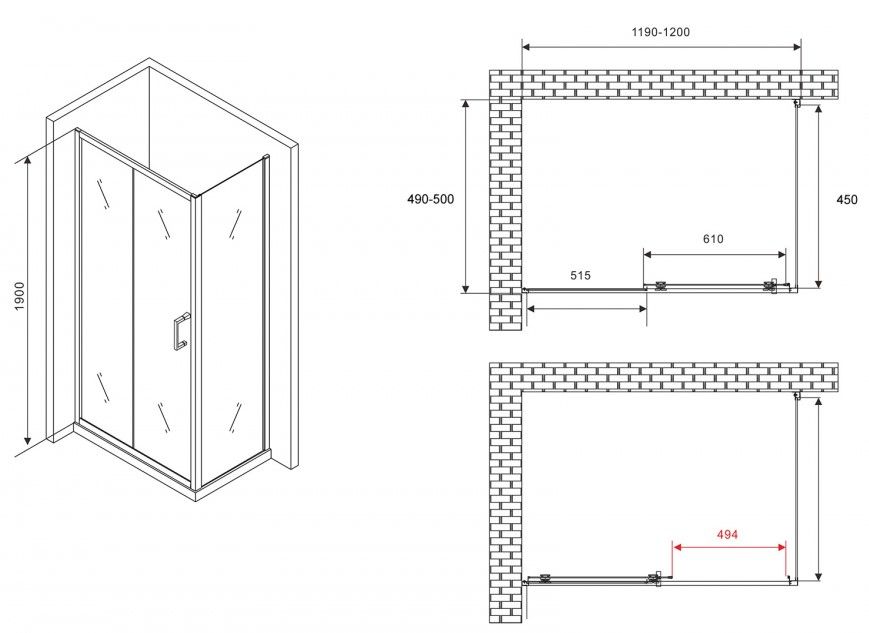 Душевой уголок ABBER Schwarzer Diamant AG301205-S505 120x50см хром