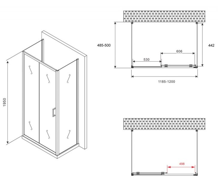 Душевой уголок ABBER Schwarzer Diamant AG30120B-S50B-S50B 120x50см чёрный