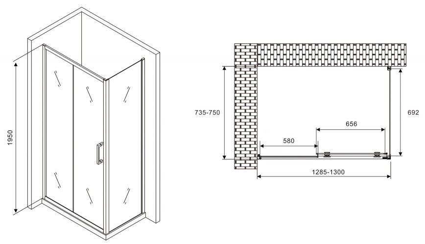 Душевой уголок ABBER Schwarzer Diamant AG30130B-S75B 130x75см чёрный