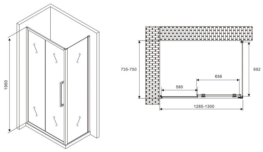 Душевой уголок ABBER Schwarzer Diamant AG30130BH-S75B 130x75см чёрный