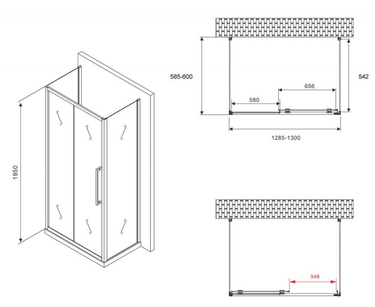 Душевой уголок ABBER Schwarzer Diamant AG30130MH-S60M-S60M 130x60см хром