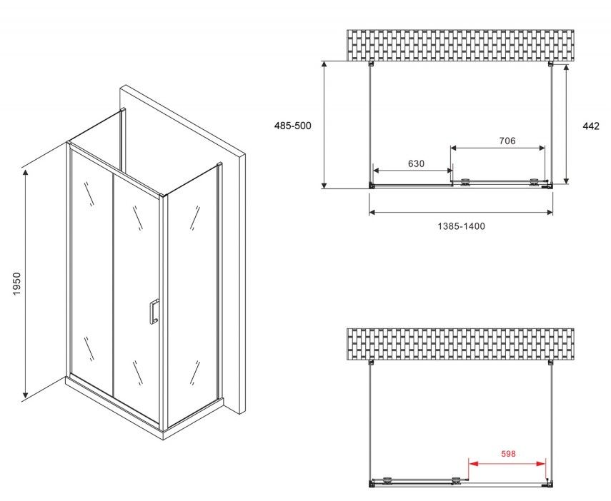 Душевой уголок ABBER Schwarzer Diamant AG30140B-S50B-S50B 140x50см чёрный