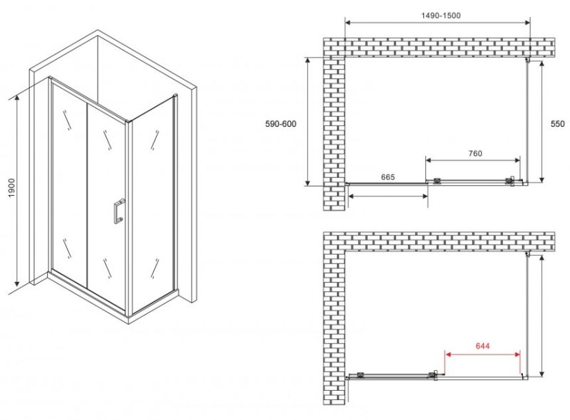 Душевой уголок ABBER Schwarzer Diamant AG301505-S605 150x60см хром