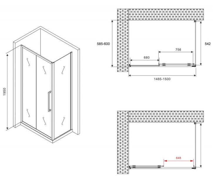 Душевой уголок ABBER Schwarzer Diamant AG30150H-S60 150x60см хром
