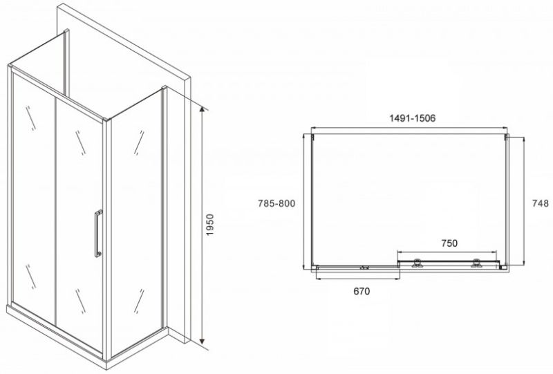 Душевой уголок ABBER Schwarzer Diamant AG30150H-S80-S80 150x80см хром