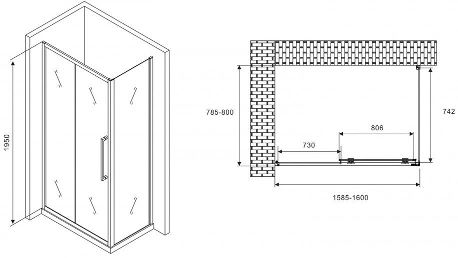 Душевой уголок ABBER Schwarzer Diamant AG30160H-S80 160x80см хром