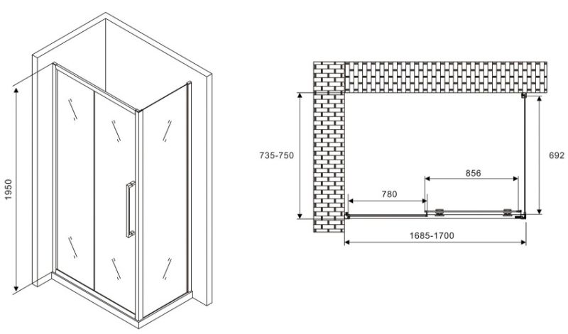 Душевой уголок ABBER Schwarzer Diamant AG30170BH-S75B 170x75см чёрный