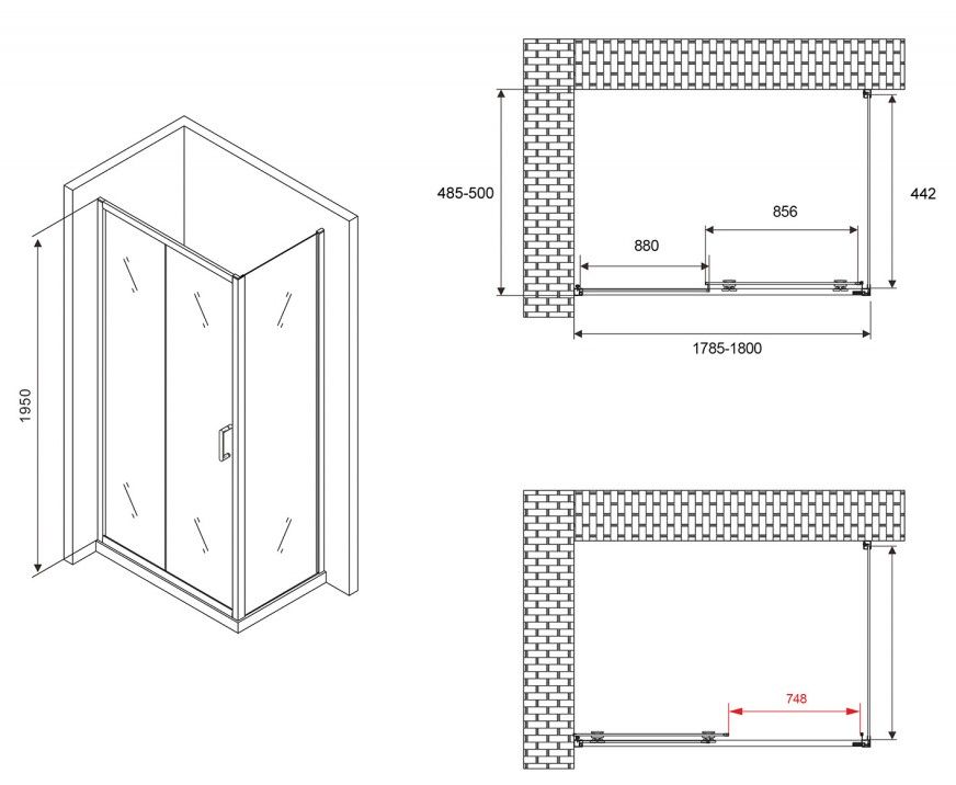 Душевой уголок ABBER Schwarzer Diamant AG30180B-S50B 180x50см чёрный купить