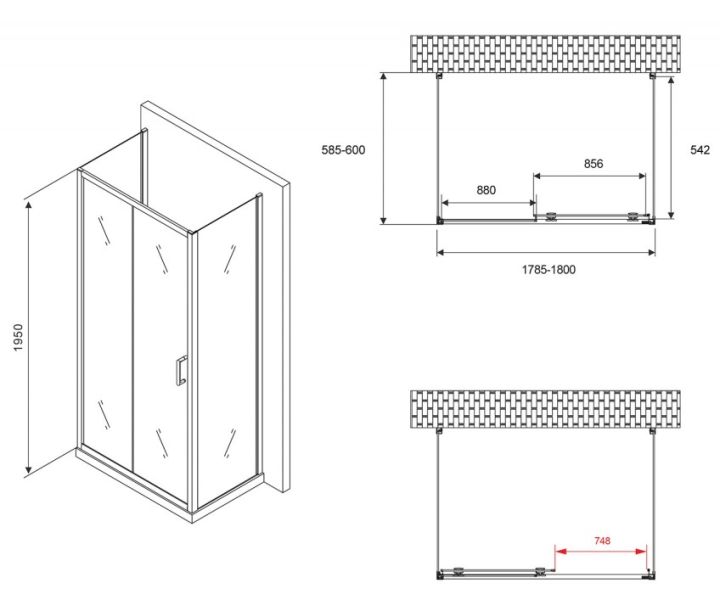Душевой уголок ABBER Schwarzer Diamant AG30180B-S60B-S60B 180x60см чёрный купить