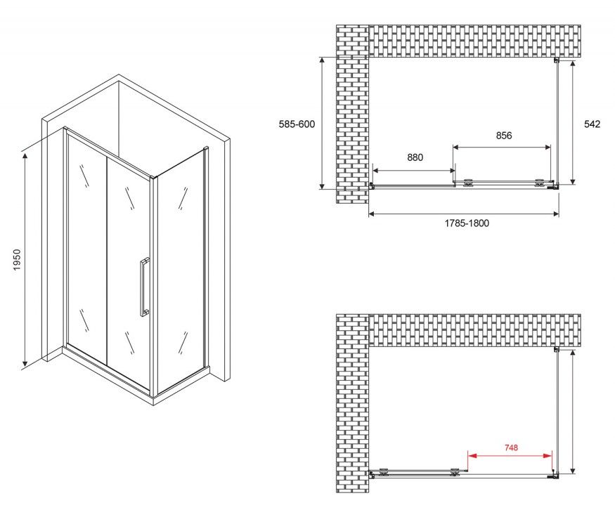 Душевой уголок ABBER Schwarzer Diamant AG30180BH-S60B 180x60см чёрный купить
