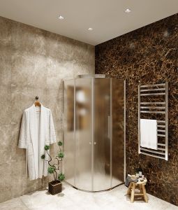 Организовать душевую зону стало легко благодаря душевому уголку Agger A01-080MCR/G. Монтаж возможен как на поддон (арт.A01-080TCR/T - приобретается дополнительно), так и напольный. Размер уголка подойдет для большинства небольших ванных комнат и составляет 80х80х185 см при стандартной форме "четверть круга". Раздвижные дверцы (стекла матовые закаленные толщиной 4 мм) закреплены при помощи профиля из алюминия с покрытием хром. Двойные ролики, обеспечивающие подвижность створок. Дверки оснащены силиконовыми уплотнителями с магнитной? лентой. Ширина уголка регулируется на несколько сантиметров. Ширина входа - 60 см.