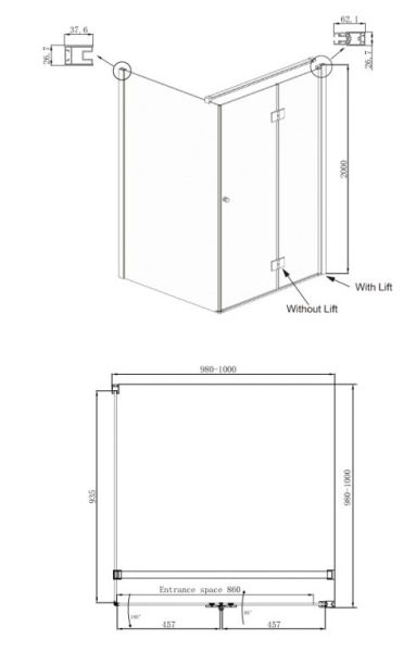 - Монтаж: на пол со встроенным душевым каналом или трапом, на поддон