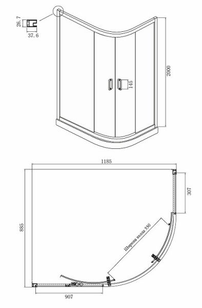 • Ширина входа: 550 мм.