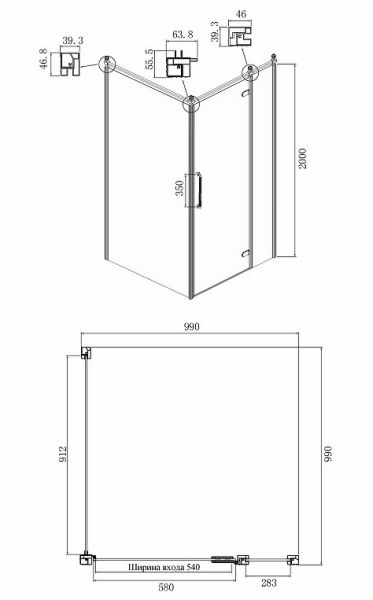 - Размеры (ШхВхД): 990x2000х990 мм.
