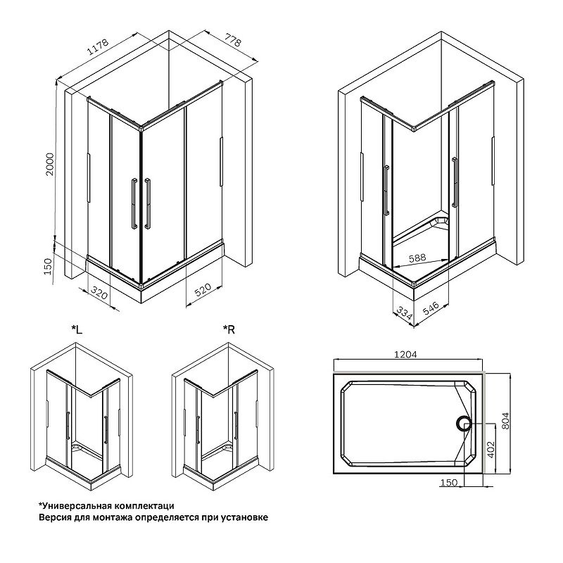 Душевой уголок AM.PM Func W84G-403-12080-BТ 120х80 профиль хром матовый стекло прозрачное купить