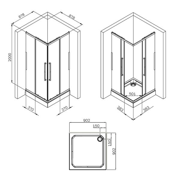 Душевой уголок AM.PM Func W84G-403-9090-BТ 90х90 профиль черный матовый стекло прозрачное купить