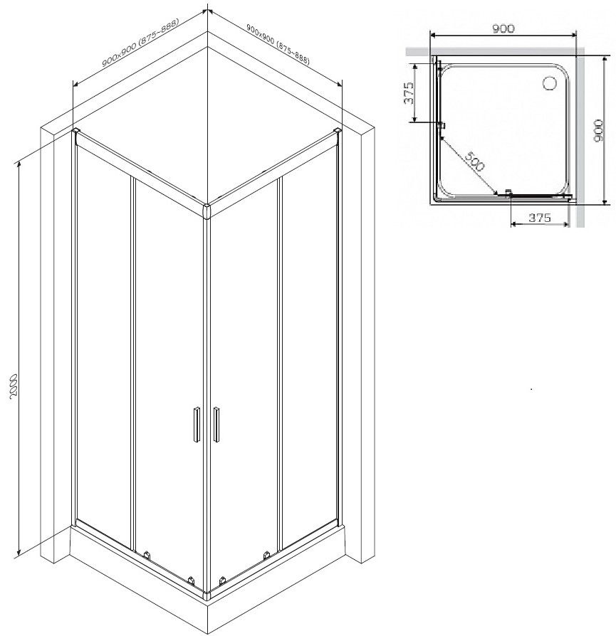 Душевой уголок Am.Pm Gem 90x90см чёрный матовый W90G-403-090BT