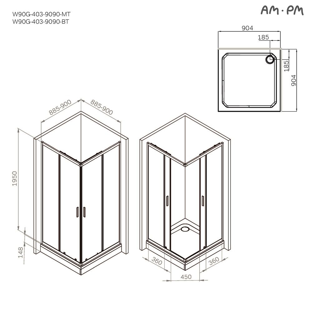 Душевой уголок Am.Pm Gem W90G-403-9090MT 90x90 см без поддона хром матовый