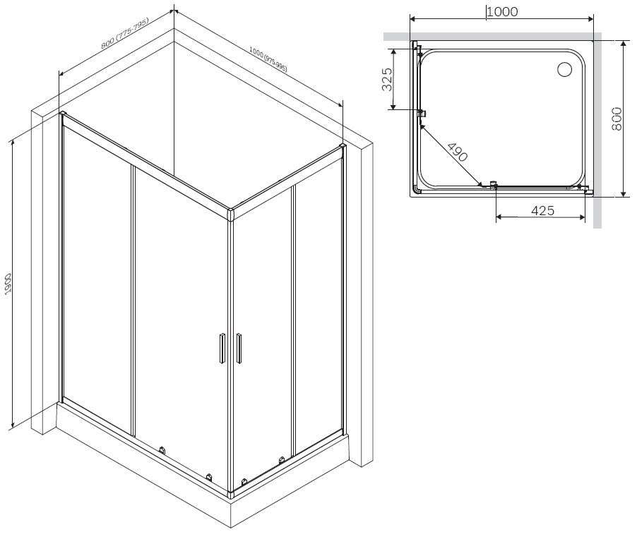 Душевой уголок Am.Pm Gem W90G-404-100280-MT 100x80 купить