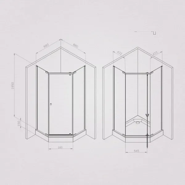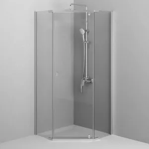 Душевой уголок AM.PM Sunny W87G-405-9090-MT 90х90 см профиль хромДушевые ограждения коллекции от бренда AM.PM из коллекции Sunny сделают ванную комнату вашим тайным местом силы и перезагрузки. Эстетика и функциональность - то, что моментально приковывает взгляды. Исключительный дизайн, к которому хочется прикоснуться. Форма модели в виде трапеции сэкономит пространство вашей ванной комнаты. А универсальная конструкция позволит выбрать при установке левую или правую версию монтажа. Высота модели достигает 195 сантиметров. Идеальный размер для комфортного пользования. Подходит даже для самых высоких. Цвет профиля - серебристый. Размер (Ш/Г/В): 880x880x1950 мм. Материал ограждения - прозрачное стекло; алюминий, сталь. Толщина стекла - 5 мм (стенка), 5 мм (дверка). Форма - пятиугольная.