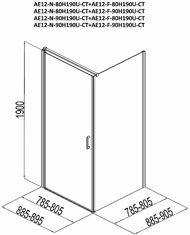 Душевой уголок Aquanet Cinetic AE12-N-90H190U-CT + AE12-F-90H190U-CT 254231 90x90 см стекло прозрачное профиль хром купить