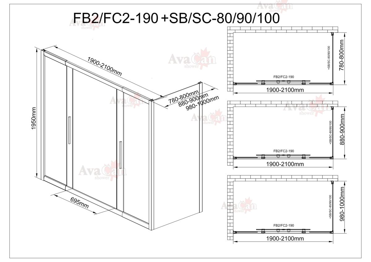 Душевой уголок AvaCan FC2 190-210 + SC80 MT хром