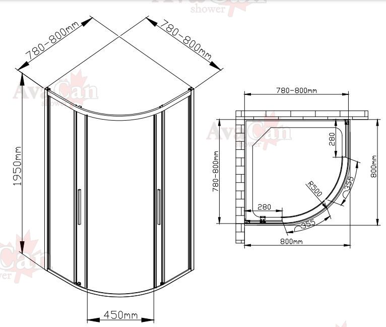 Душевой уголок AvaCan HB 80 MT 80x80 см чёрный
