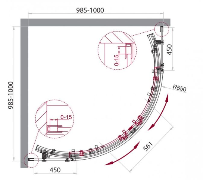 Душевой уголок BelBagno четверть круга хром ACQUA-R-2-100-C-Cr