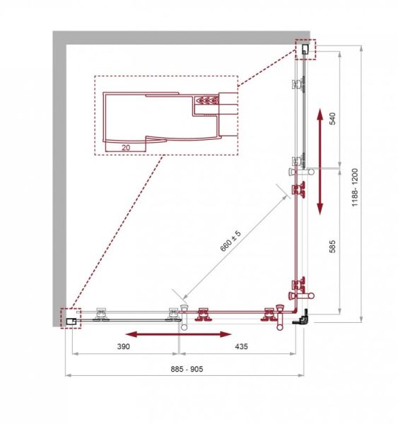 Регулировка ширины: предусмотрена за счет боковых профилей