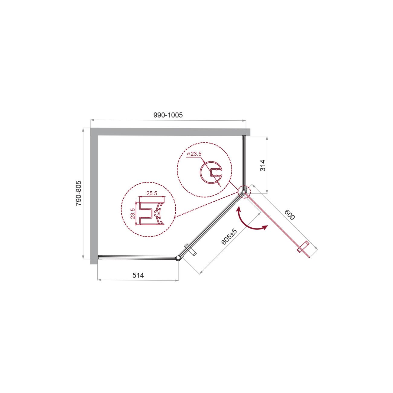 Душевой уголок BelBagno UNO-195-PH-1-100/80-C-Cr хром