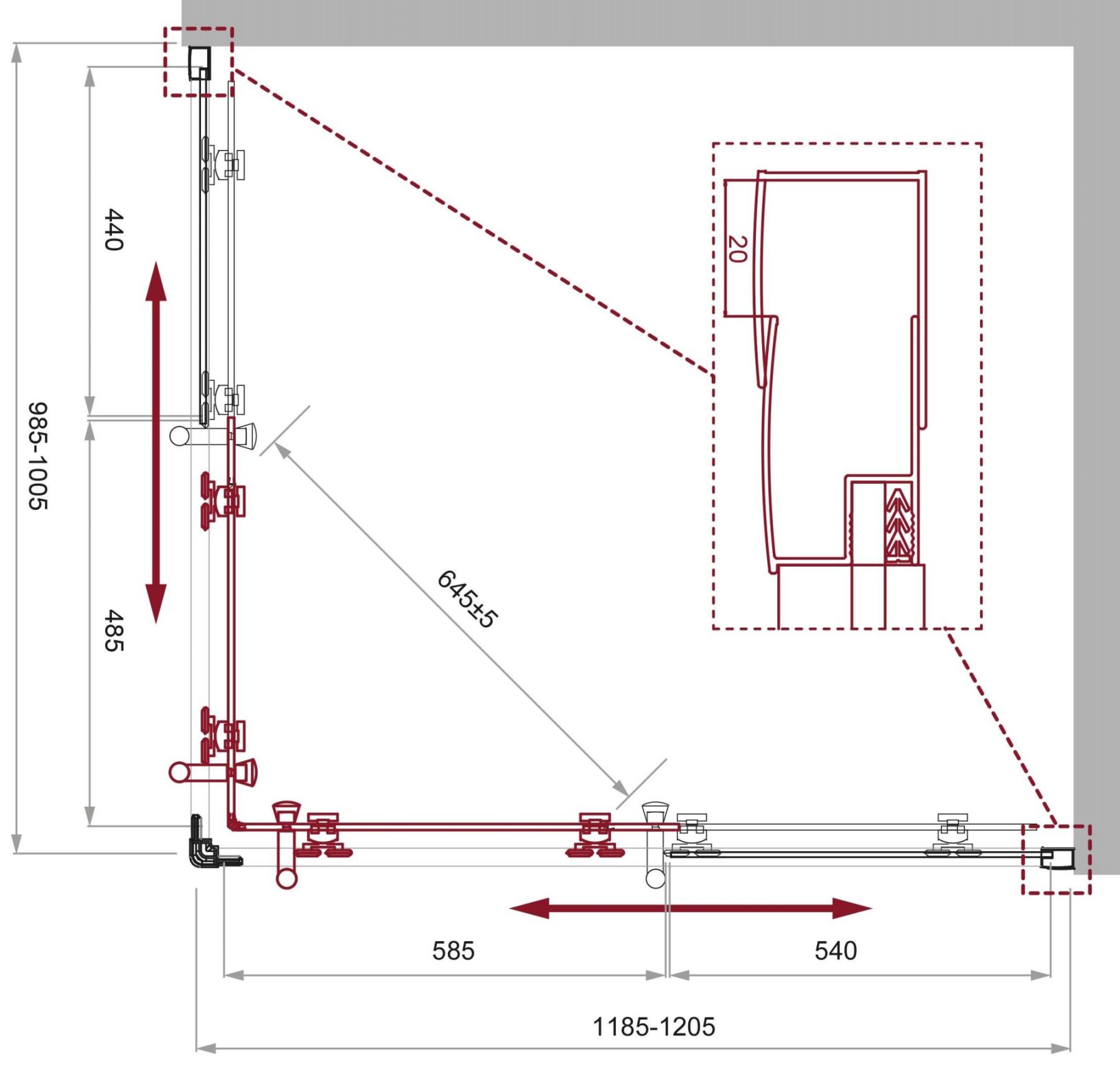 Регулировка ширины: предусмотрена за счет боковых профилей
