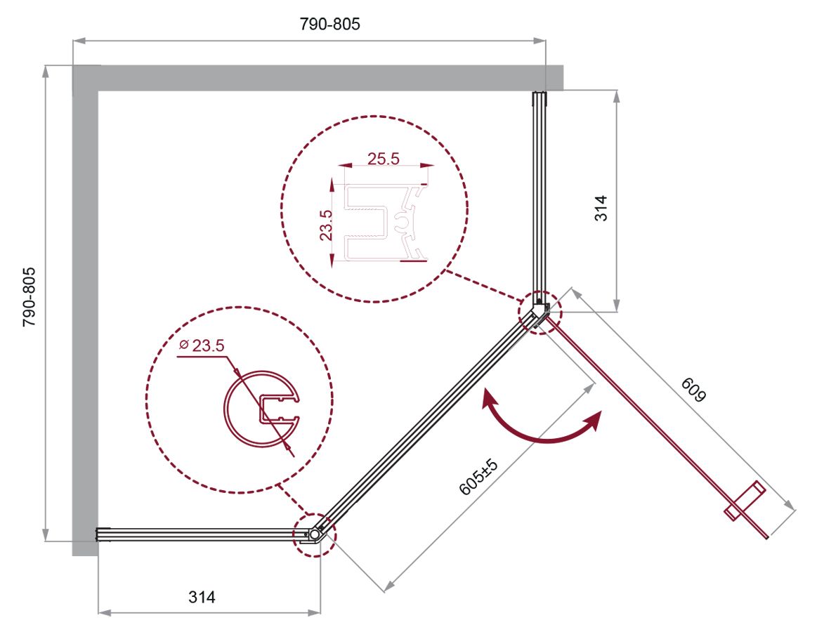 Душевой уголок BelBagno Uno 80см хром UNO-195-P-1-80-C-Cr