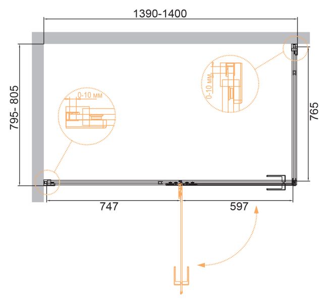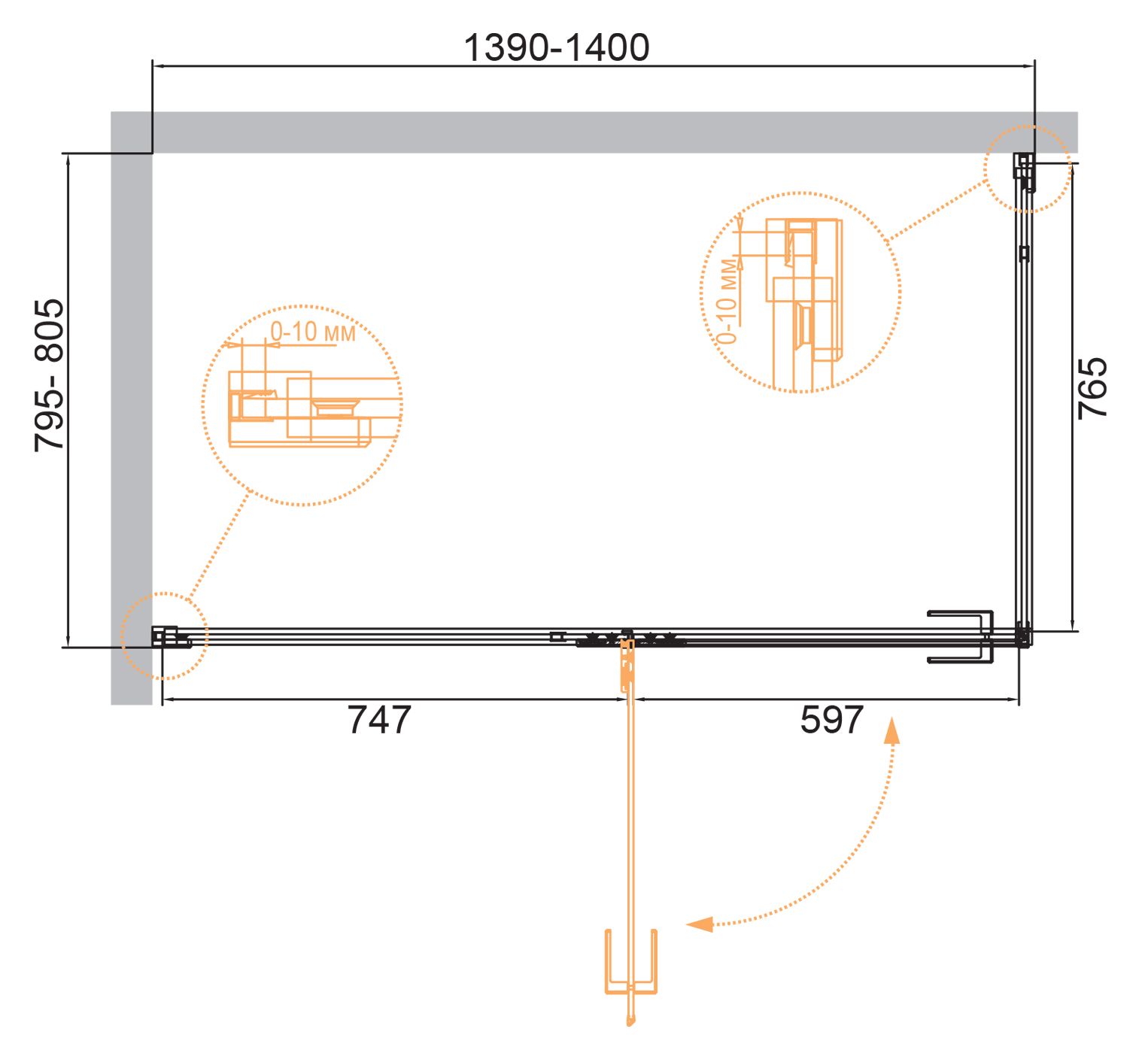 Регулировка ширины: предусмотрена за счет боковых профилей