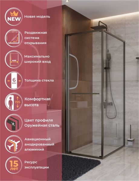 Душевой уголок CEZARES LUX-AH-FS-1-80/100-C-GM оружейная сталь купить