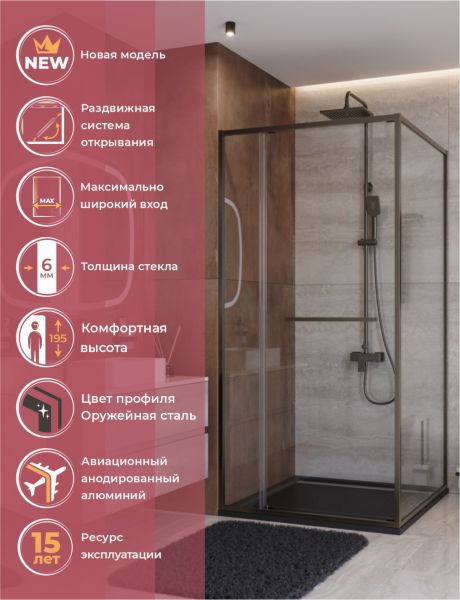 Душевой уголок CEZARES LUX-AH-FS-11-100/80-C-GM оружейная сталь купить