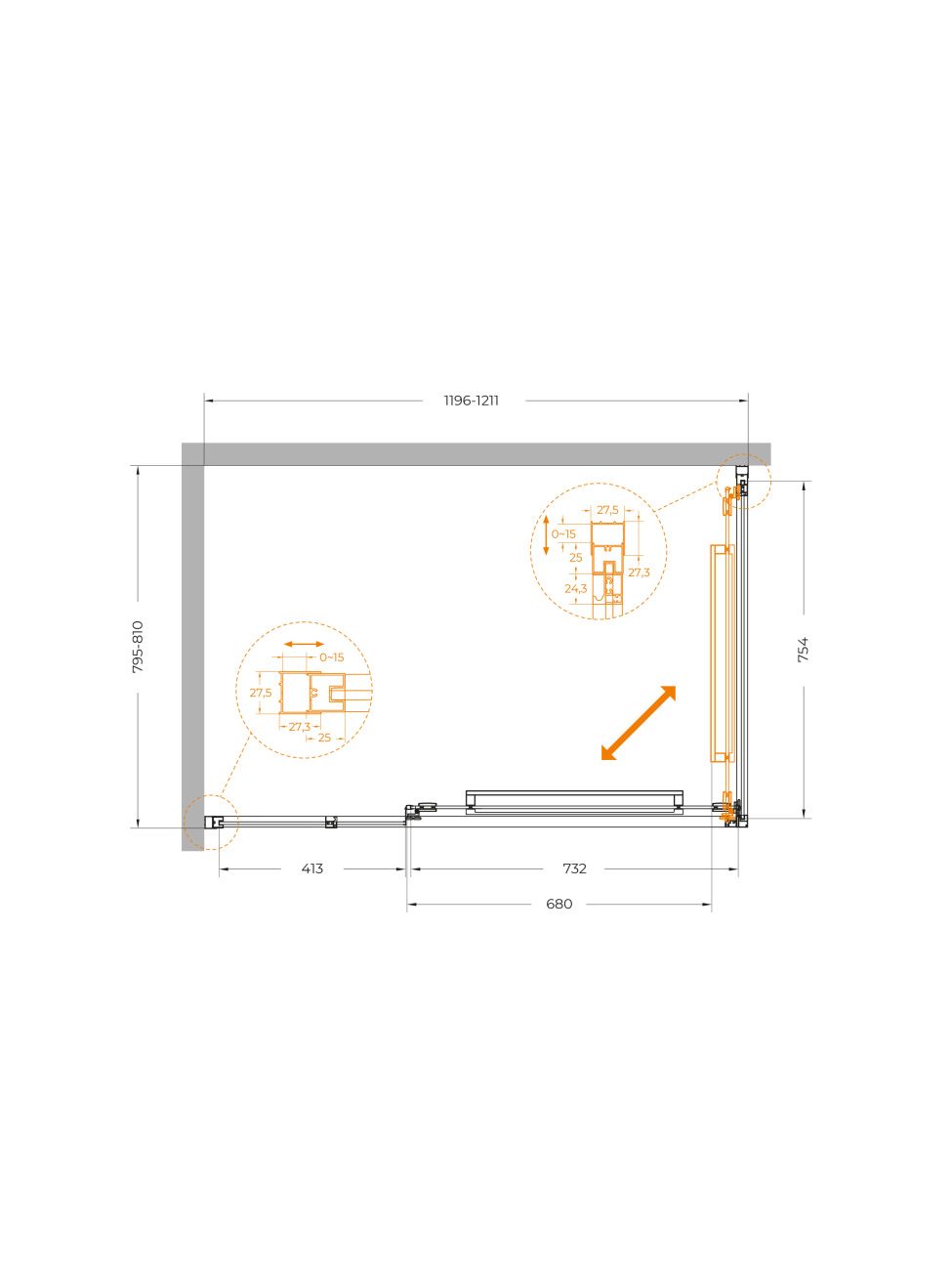 Душевой уголок CEZARES LUX-AH-FS-11-120/80-C-CR хром
