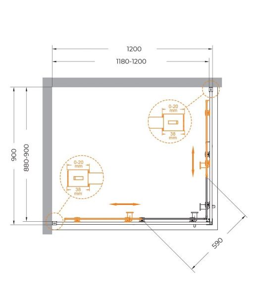 Душевой уголок CEZARES RELAX-304-AH-2-120/90-C-CR