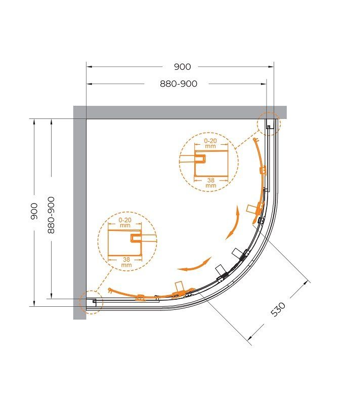 Душевой уголок CEZARES RELAX-304-R-2-90-C-BORO