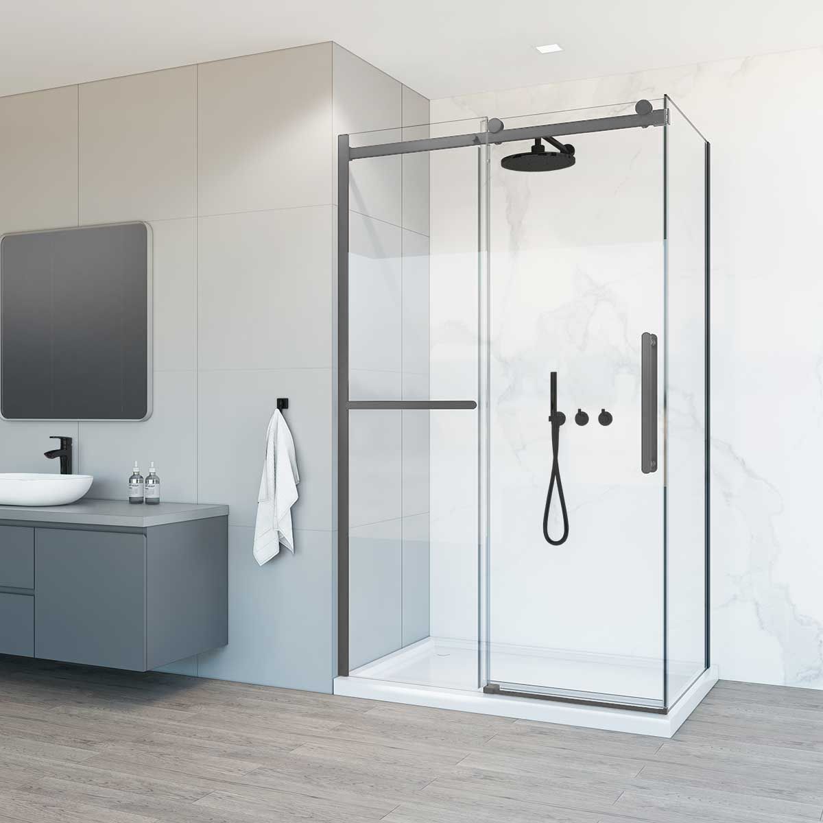 Душевой уголок Vincea Como Soft VSR-1CS9013CLGM, 1300*900, вороненая сталь, стекло прозрачное купить