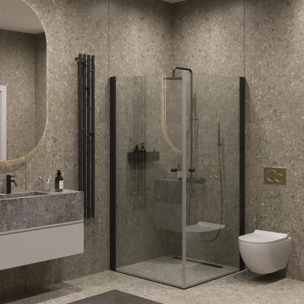 Душевой уголок на монопетле by Deonria U-80-79-6-T-B 80x79см чёрный/прозрачный