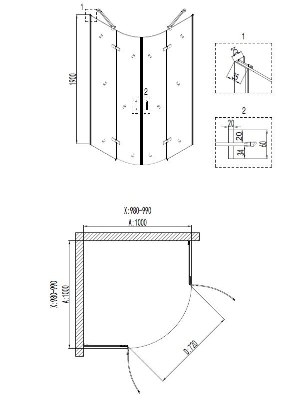 Форма:четверть круга