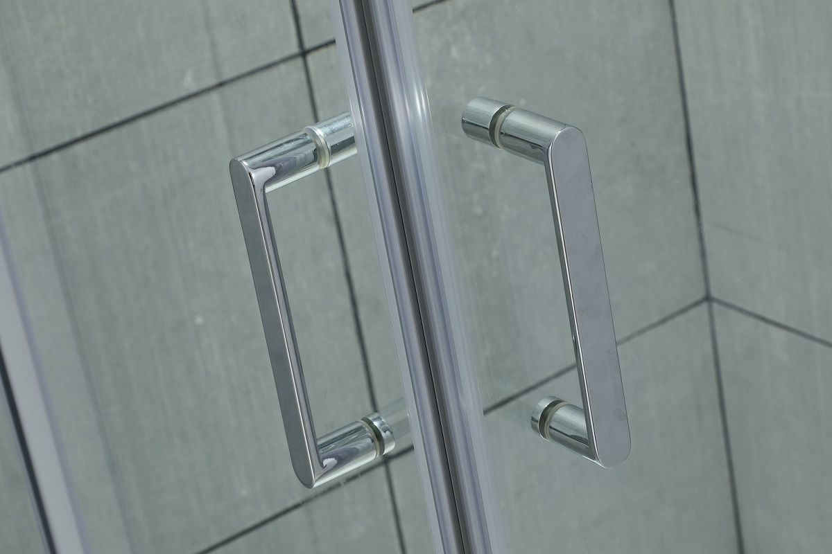 Стильное и современное решение для ванных комнат - душевой уголок с распашной системой открывания дверей Orange E04-100TCR (монтаж напольный без поддона). Модель выполнена из прозрачного закаленного стекла толщиной 6 мм, которое помещено в двойной алюминиевый профиль с защитным хромовым покрытием. Размер уголка 98х98х190 см - вся конструкция отличается герметичностью, надежностью и долговечностью. Двери с подъемным механизмом при открывании приподнимаются автоматически. Ширина входа - 90 см.