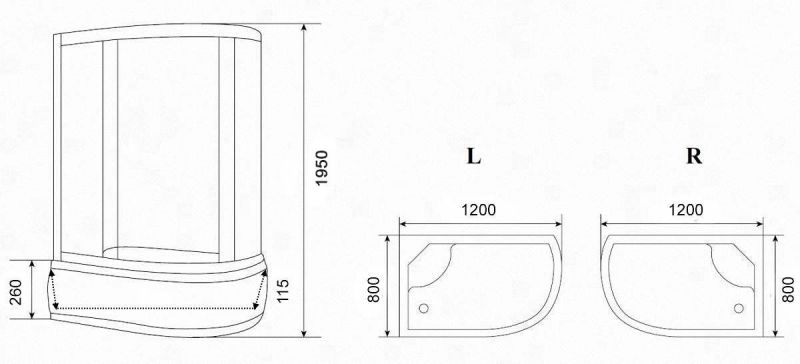 Уголок ZEM1201ВL душевой PARLY с поддоном (120х80х195)Размер: 120х80х195