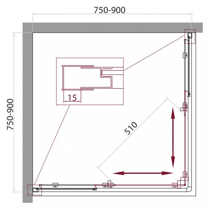 Душевой уголок прямоугольный, хром BelBagno UNIQUE-A-2-75/90-C-Cr