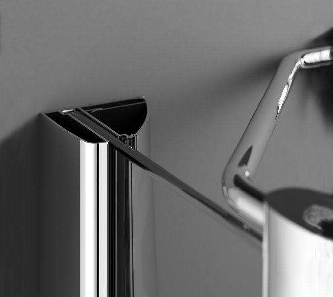 Округлая форма душевого уголка делает нахождение в небольших ванных комнатах более приятным, а двухэлементные двери предоставляют удобный широкий вход.