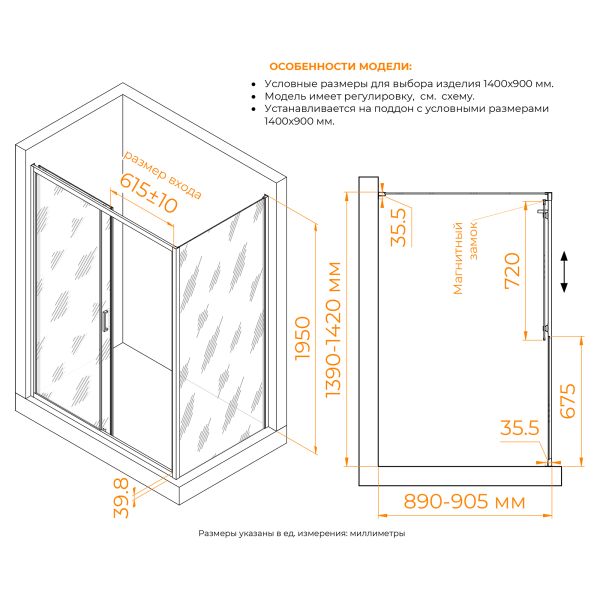 • Конструкция дверей: раздвижная
