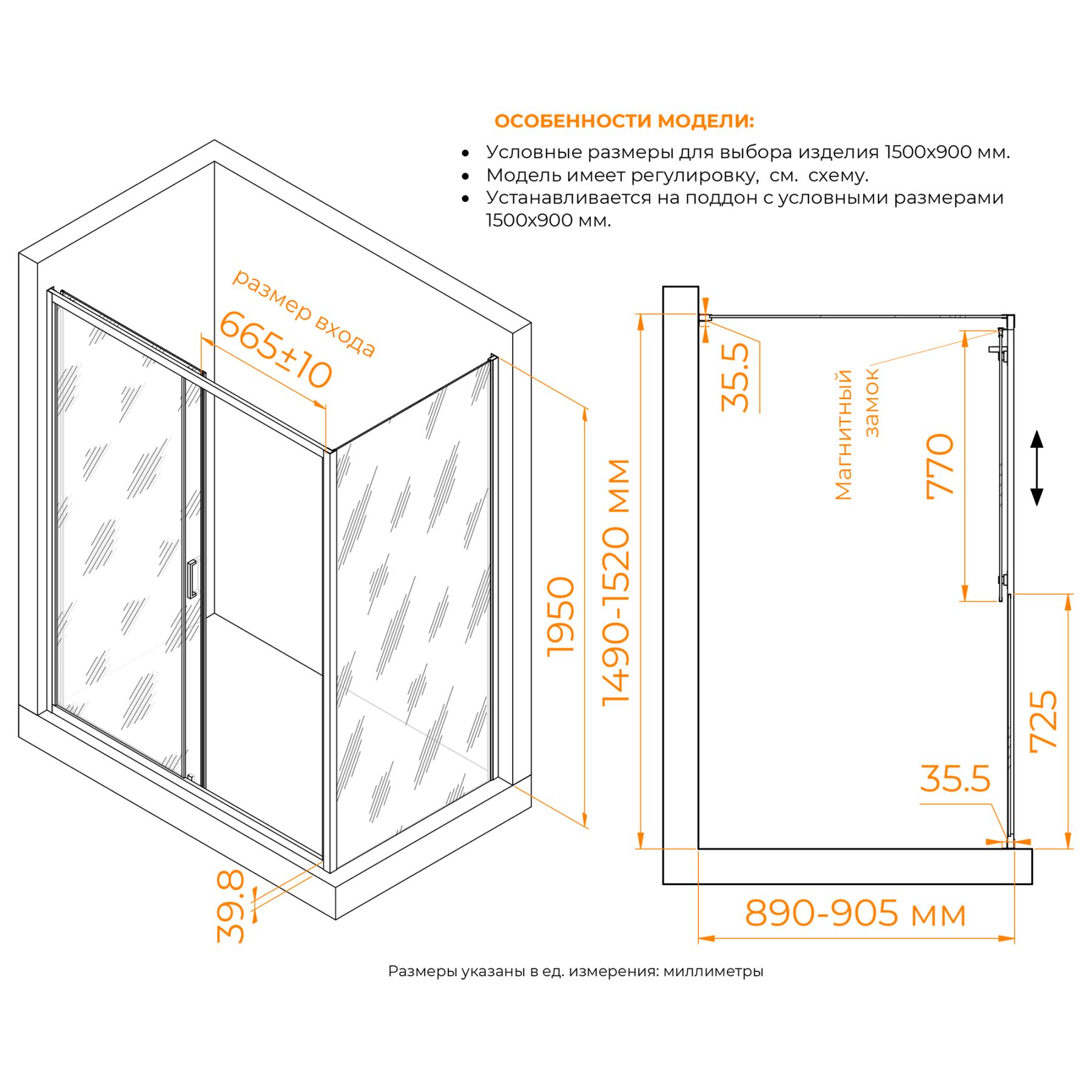 - Конструкция дверей: раздвижная