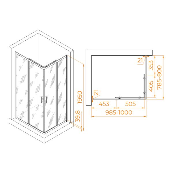 Душевой уголок RGW PA-040B 3508104080-14 80x100см чёрный купить